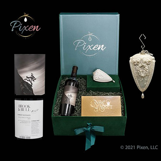 painter Eugenia Pardue, a Signature Gold Box from Candy Basket featuring a lovely collection of milk chocolate nuts and chews, and finally a bottle of 2017 BROOK & BULL Cabernet Sauvignon from the Walla Walla Valley. -